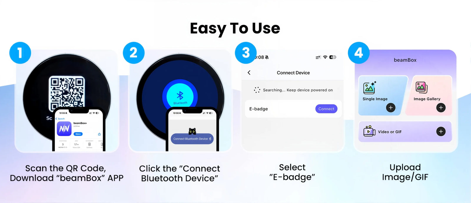 Instant Bluetooth Uploads: Connect effortlessly via our free iOS and Android app. Upload photos, videos, or scrolling text in seconds using Bluetooth Low Energy technology.