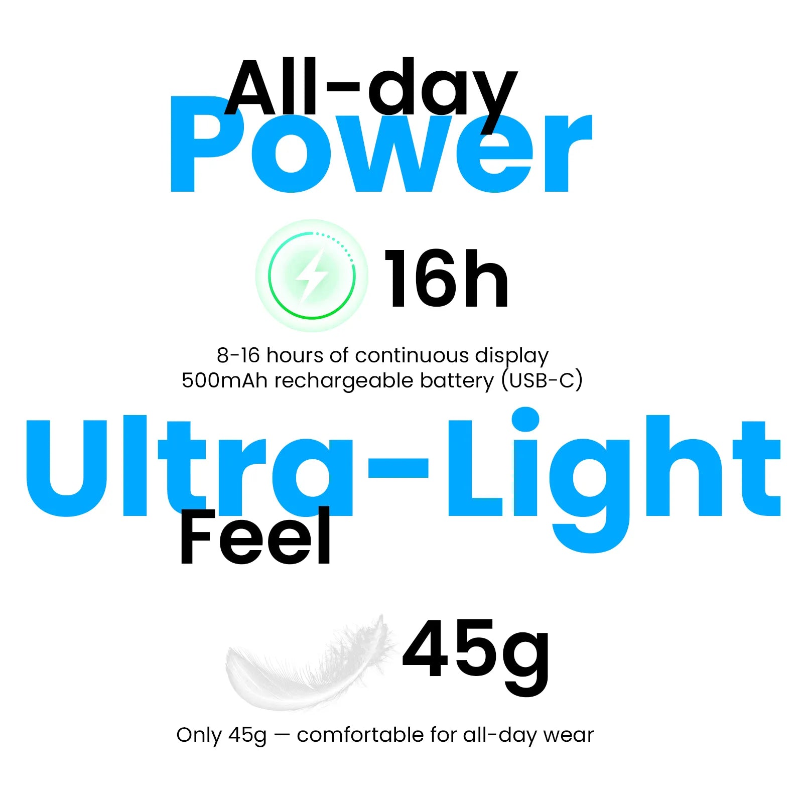 All-Day Battery Life: Powered by a 730mAh rechargeable Lithium battery. Delivers up to 8 hours of continuous playback on high brightness, and up to 16 hours in power-save mode.